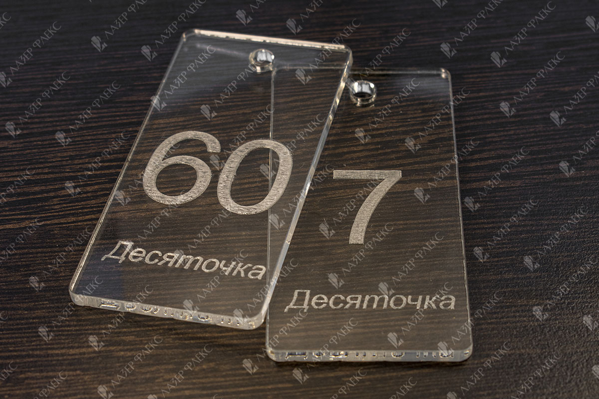 Чтобы номерки для ключей не стирались со временем, цифры выжигаются на самом материале и выглядят в виде углублений. Для контрастности они заливаются краской другого цвета. Помимо функциональных целей, изделие получает привлекательный и солидный внешний вид.