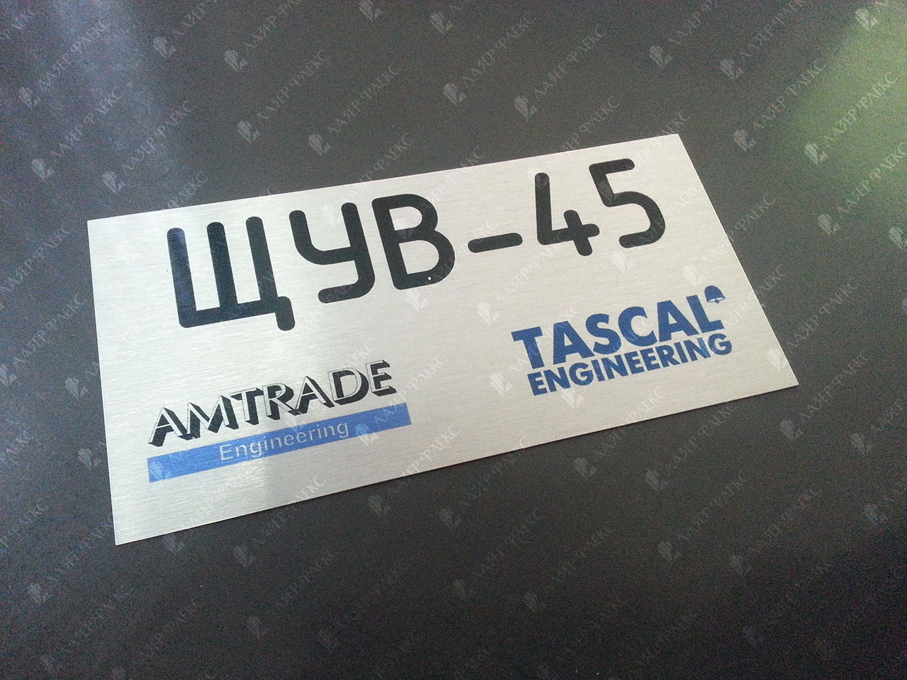 Как правило, для производства шильдов используются алюминиевые пластины толщиной от 0.2 мм до 1.6 мм. Этот материал не подвержен коррозии (не окисляется). К тому же, он очень легкий, что является преимуществом для изделий такого рода. Металл лучше всего позволяет выполнить требования к информационным табличкам. А именно: обеспечивает четкость нанесенных очертаний и долговечность. Рисунок внедряется вглубь металла, поэтому никакие поверхностные царапины не способны разрушить основное изображение. Что положительно сказывается на внешнем виде изделия в целом и на сохранности необходимой информации.