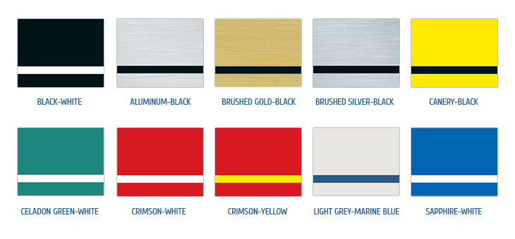 Нанесение рисунка лазером применяется на двухслойном металлизированном пластике. В этом случае после прожигания верхнего слоя под «золото», «серебро», «бронзу» изображение имеет цвет нижнего слоя (например, черного, или любого другого). Особый интерес представляет гибкость материала. Информирующие пластинки можно размещать на любой искривленной поверхности. Кроме того, гибкий пластик обладает способностью самовосстановления, например, после царапины.
